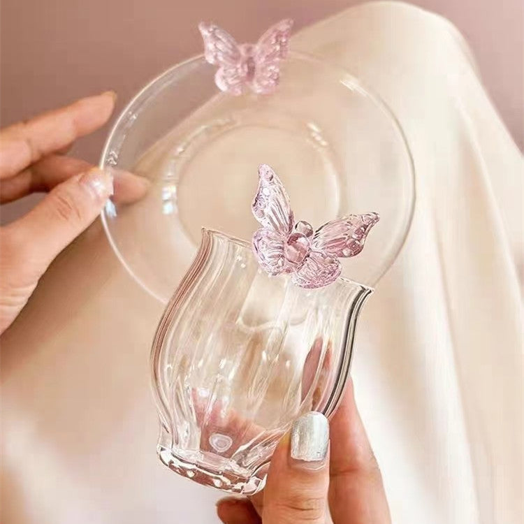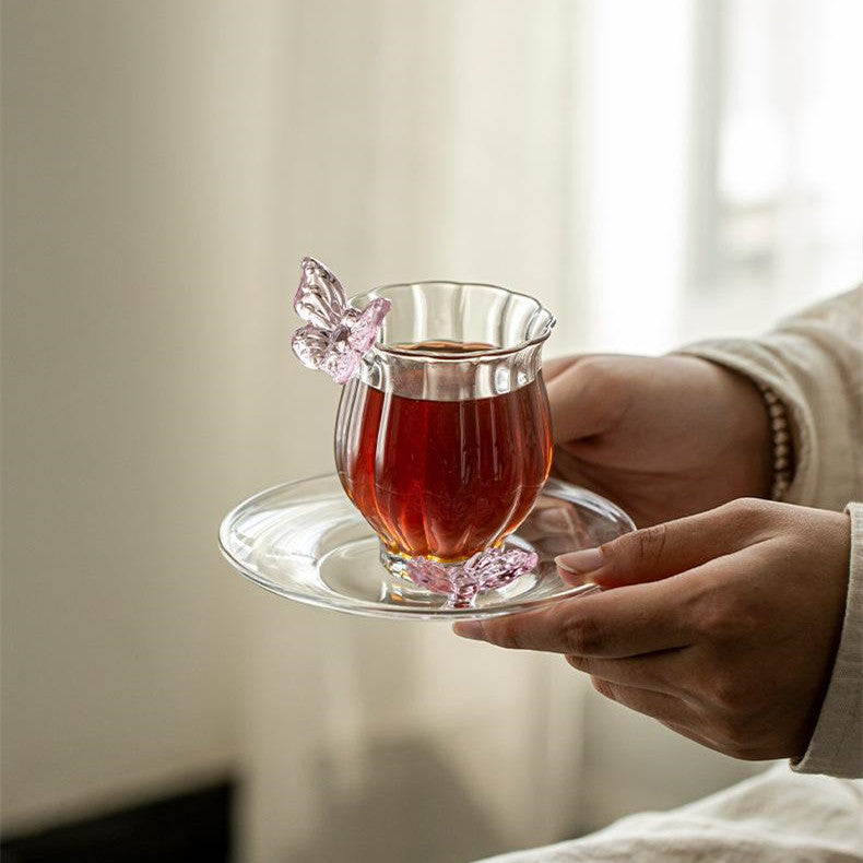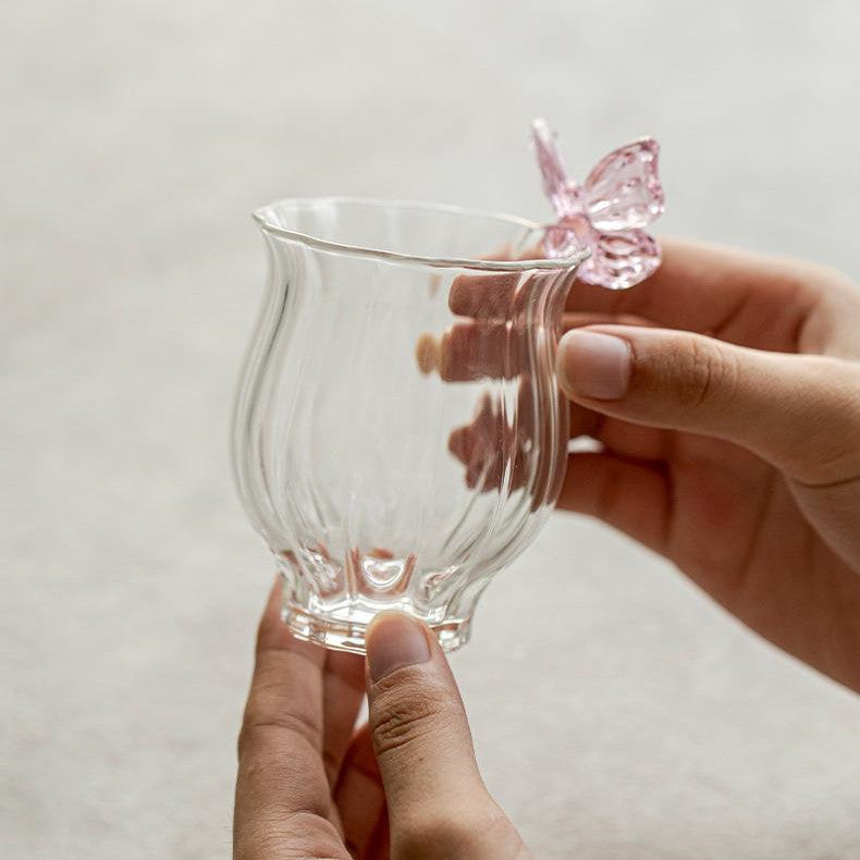 Inspired by fluttering butterflies in a blooming garden, this glass cup exudes elegance and lightness. The soft pink accents add romance, while high-borosilicate glass ensures lasting beauty.