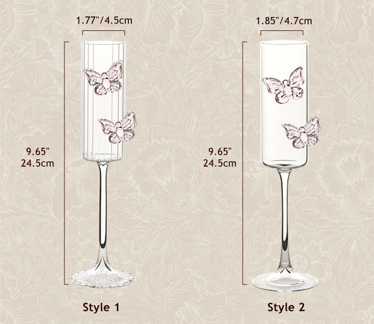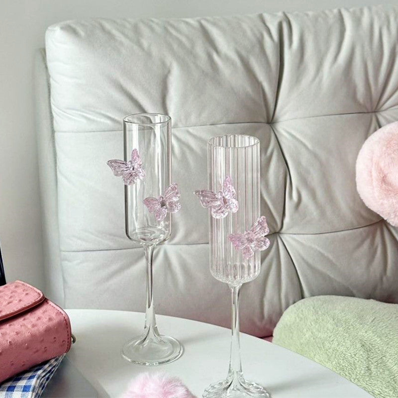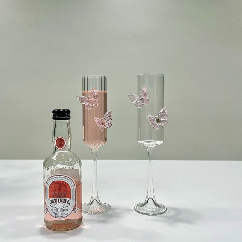 Crafted from high-quality glass, the Whispering Wings Glass features a delicate butterfly motif, bringing a touch of enchantment to every toast. Whether smooth or ribbed, each flute embodies timeless sophistication.